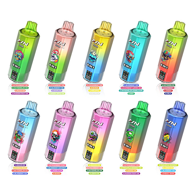 Choose from 10 exciting flavor sets, including Strawberry Ice + Watermelon Ice + Peach Ice + Passion Fruit Ice, Blueberry Ice + Raspberry Lemon Ice + Watermelon Bubblegum + Mint, Grape Ice + Mango Peach + Watermelon Ice + Blueberry Ice, and more. Each puff delivers fresh, bold taste and smooth vapor. Perfect for personal use or wholesale, the Aivono Aim AVN 150K 8in1 combines performance, variety, and convenience in a sleek, high-capacity disposable vape.